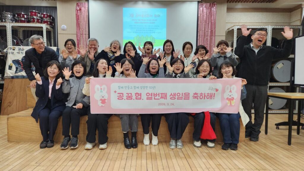 “힘들어”하면서 또 시작, 유쾌한 10년2026년 03월 18일우리동네 사진 한 장공릉꿈마을협동조합이 10주년을 맞았다. 지난 17일 꿈마을공동체회의를 앞두고 짧은 생일 잔치를 열었다.마을은 언제나 유쾌하다. 그래서 10년이 가능했다. 매번 사업을 수행할 때마다 ‘힘들어’를 입에 달고 살지만 오늘은 또 새로운 사업을 준비하고 있다.광고 카카오톡 밴드 링크 강봉훈 기자https://anmaeul.com 인기 기사“350년 유럽 커피의 기억···공릉동 문화로 만들고 싶어”태릉우성A, 33층 704세대 규모 재건축 확정공릉1동 주민센터, 공릉역세권 랜드마크로 이전월계어르신휴센터 개관식노원문화대학 2분기 수강생 모집연극협회, 어린이청소년연극제 참가자 모집천상병시문학상 김용만·동심문학상 이오자 시인 뉴 스천상병시문학상 김용만·동심문학상 이오자 시인태릉우성A, 33층 704세대 규모 재건축 확정연극협회, 어린이청소년연극제 참가자 모집“사람을 피우는 ···” 남부자활 사훈 전달식“쇠락하는 노원에 활력” 송재혁 구청장 출마 선언“공릉동 일꾼 누구” 지선 도전자 속속 출사표