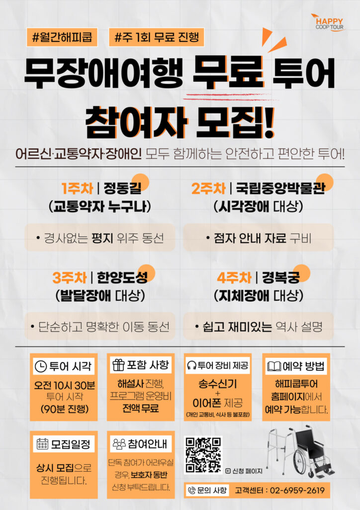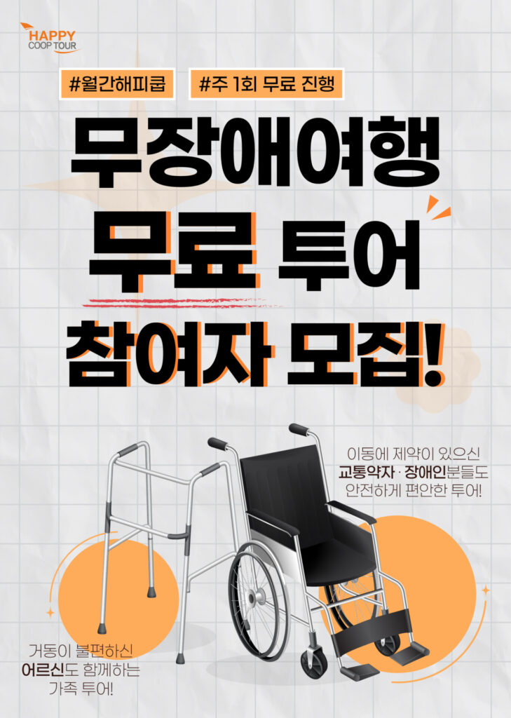 신청 페이지 : https://www.happycooptour.com/category/MonthlyHAPPYCOOP/BarrierFree?product_type=fit