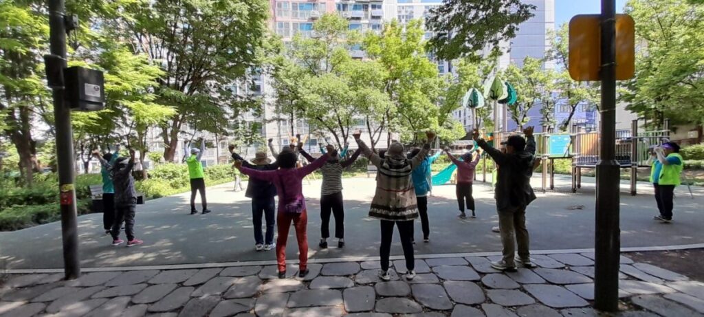 매주 1~2회, 오전 9시 30분부터 11시까지 90분간 진행되는 이 프로그램은 어르신들이 생활권 내에서 노년기 건강 유지에 필요한 일일 운동량을 자연스럽게 제공한다.