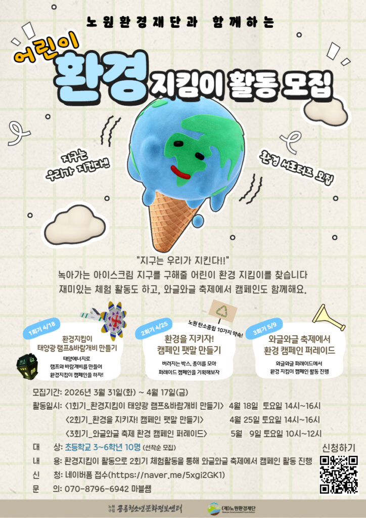 녹아가는 아이스크림 지구를 구해줄 어린이 환경 지킴이를 찾습니다.