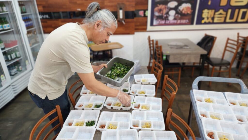 김 대표가 어르신들께 제공할 도시락을 직접 준비하고 있다.